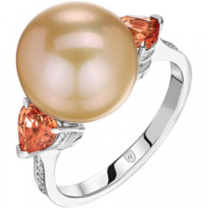 Кольцо из белого золота с жемчугом, сапфирами и бриллиантами