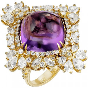 Кольцо из лимонного золота с аметистом, сапфирами и бриллиантами
