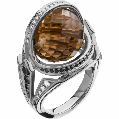 Кольцо из белого золота с морганитом, шпинелями и бриллиантами