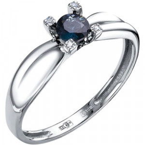 Кольцо из белого золота с сапфиром и бриллиантами