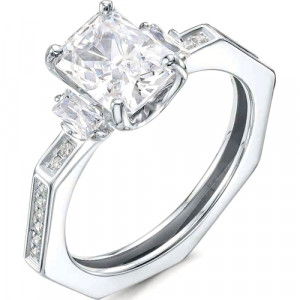 Кольцо из белого золота с бриллианитом и фианитами