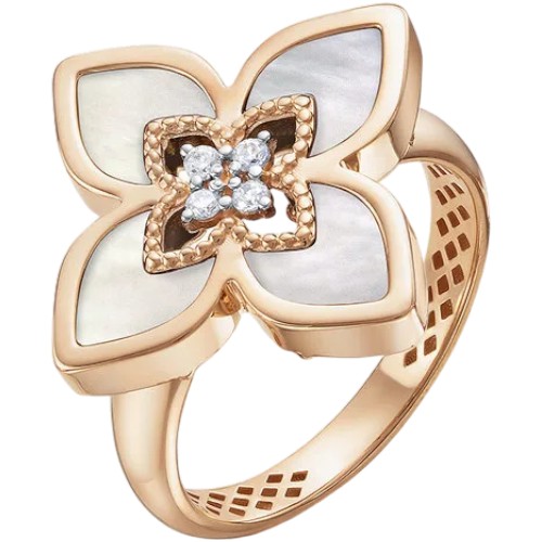 Кольцо из золота с перламутрами и фианитами