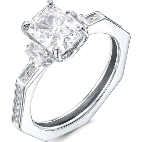 Кольцо из белого золота с бриллианитом и фианитами