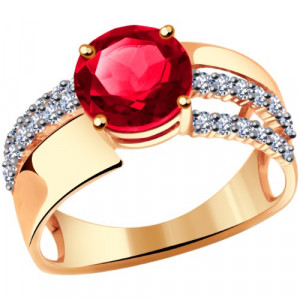 Кольцо из золота с рубином и фианитами