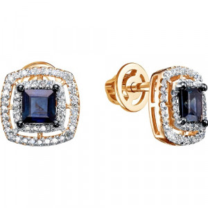 Серьги-пусеты из золота с сапфирами и бриллиантами