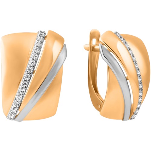 Серьги-пусеты из белого золота с перламутром и фианитом