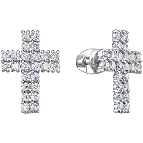Серьги-пусеты из серебра с фианитами