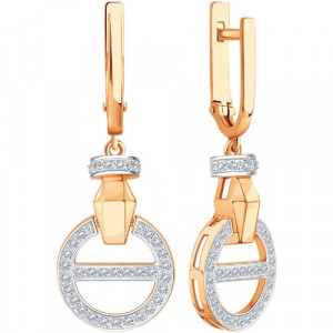 Серьги-пусеты из лимонного золота с фианитами и эмалью