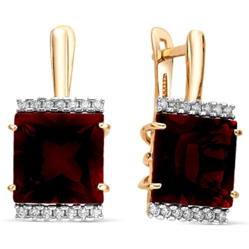 Серьги из золота с гранатами и фианитами