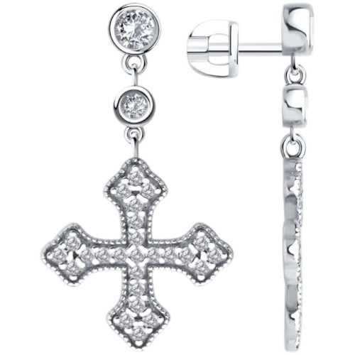 Серьги-пусеты из серебра с фианитами