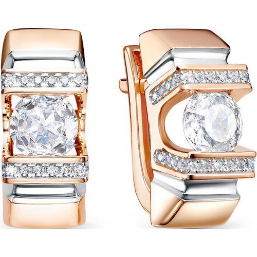 Серьги из золота с бриллианитами и фианитами
