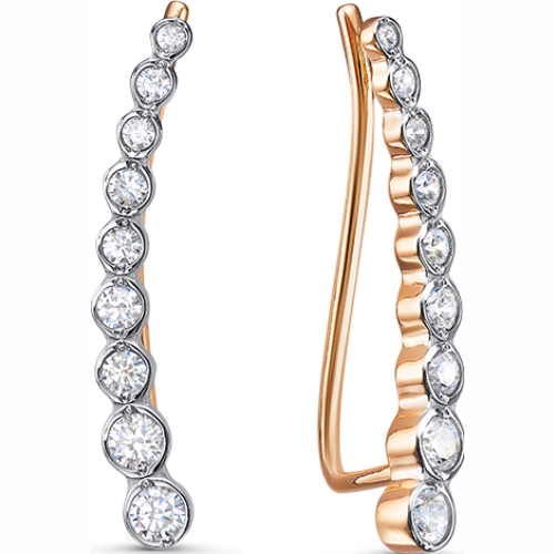 Серьги-пусеты из белого золота с перламутром и фианитом