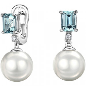 Серьги из белого золота с жемчугом, аквамаринами и бриллиантами