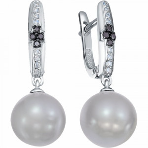 Серьги из белого золота с жемчугом и бриллиантами