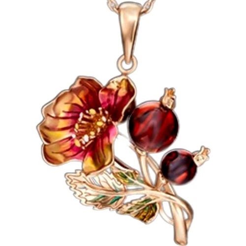 Подвеска из золота с янтарём и эмалью