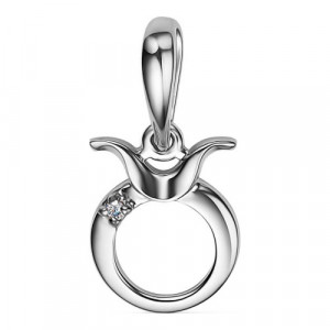 Подвеска ТЕЛЕЦ из белого золота с бриллиантом
