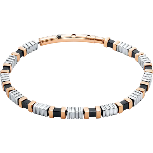 Браслет из серебра с ониксами и перламутром Ø 10 мм