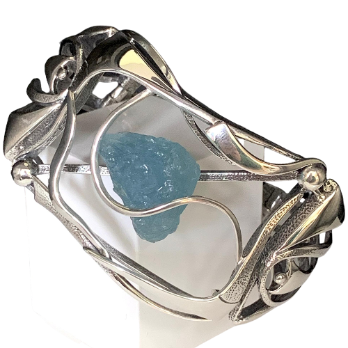 Браслет жёсткий из белого золота с фианитами