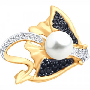 Брошь из серебра с аметистами и фианитами