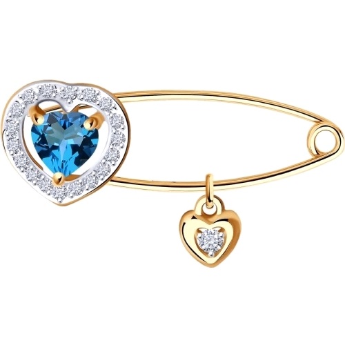 Булавка из золота с топазом и фианитами