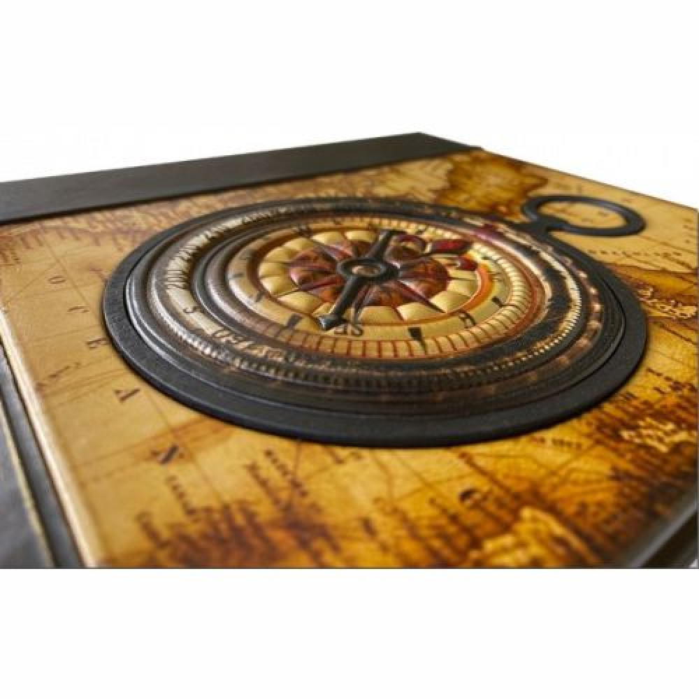 Кожаный переплет, ручная работа, оформление – объёмная 3D накладка из кожи с фотопечатью в виде компаса, деревянные художественные вставки.