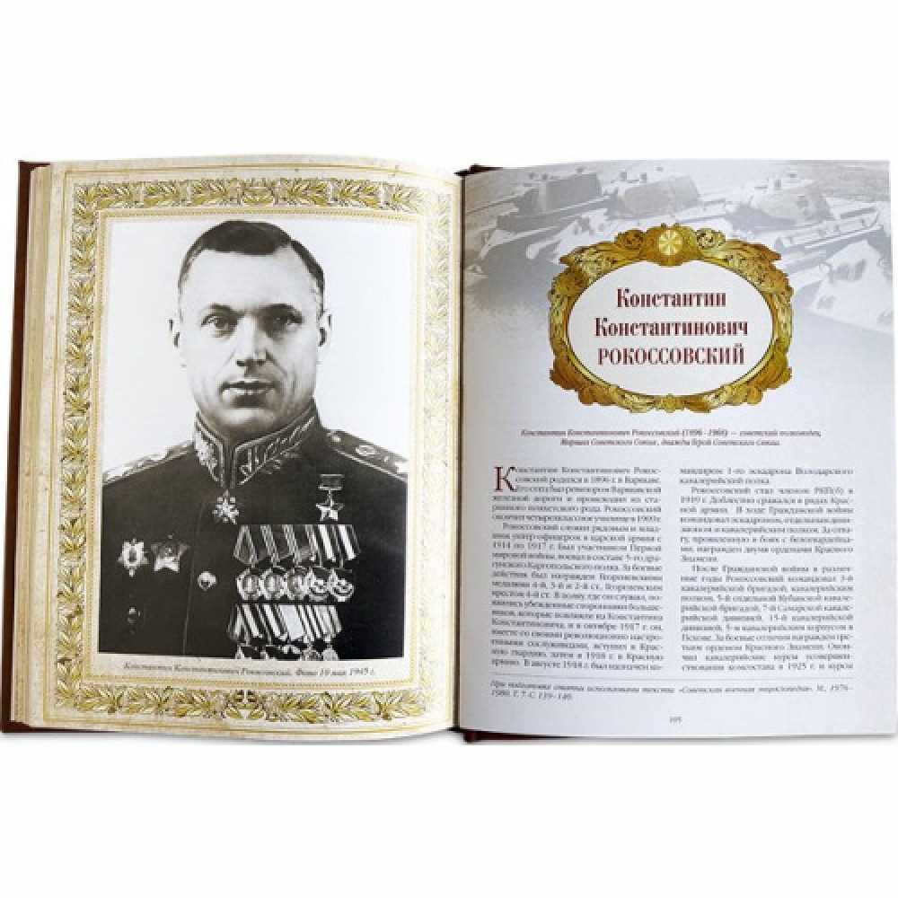 Кожаный переплет, ручная работа, оформление – фотопечать портретов военачальников России на коже, фольгированное тиснение, трехсторонний золотой обрез.