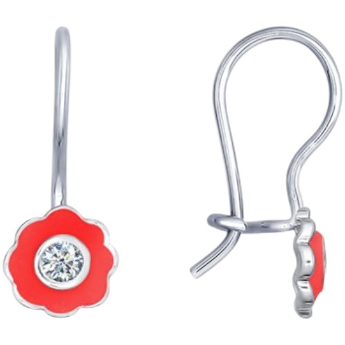 Серьги из серебра с фианитом и эмалью