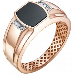 Печатка из золота с ониксом и фианитами