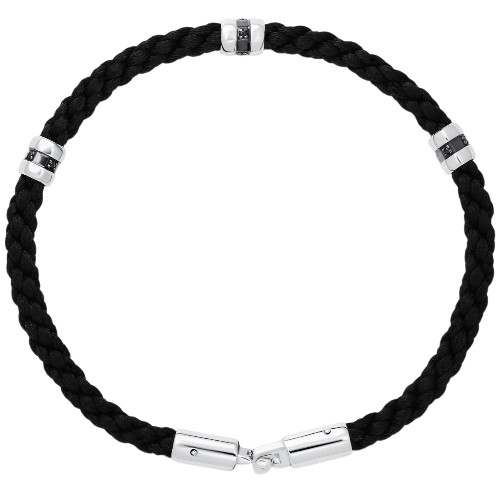 Браслет из текстильного шнурка с серебряными вставками и фианитами