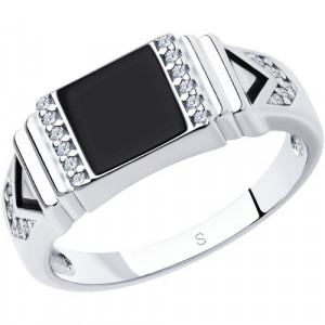 Печатка из серебра с фианитами и эмалью