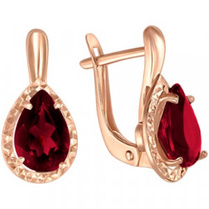 Серьги-конго из золота с родолитами и фианитами